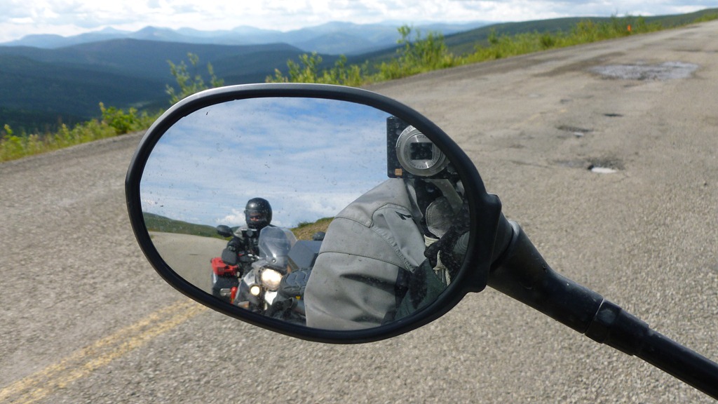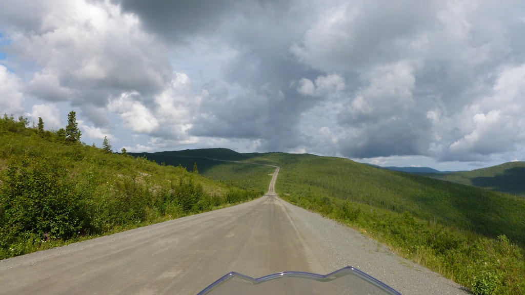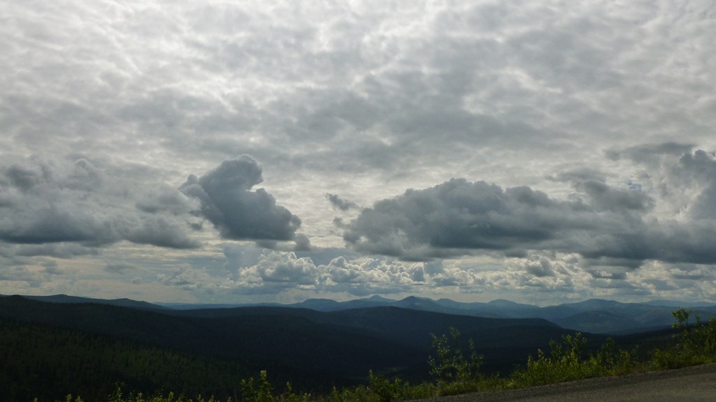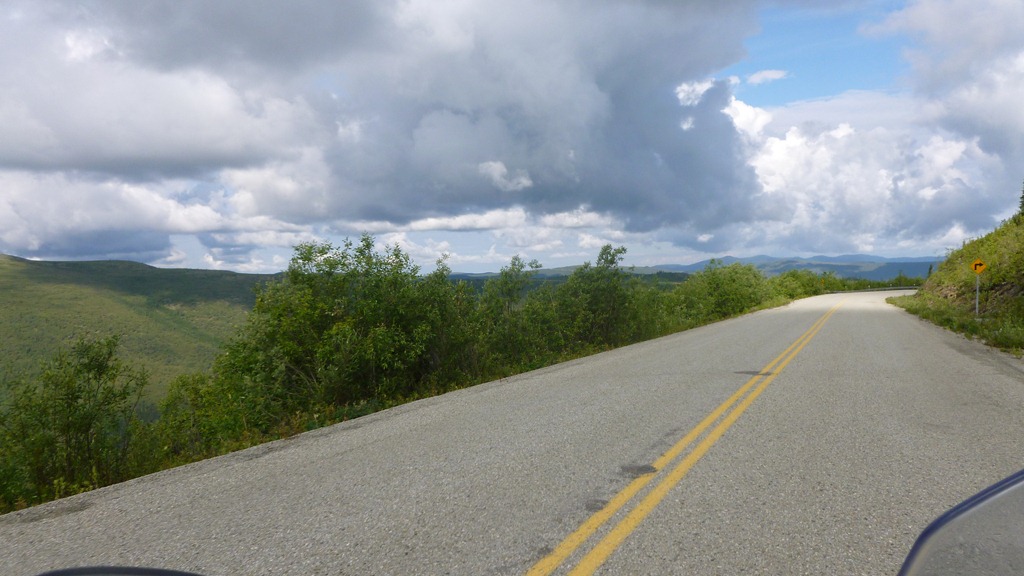 Those are clouds among the hills, mountains and valleys. This road is absolutely dead gorgeous and actually really fun to ride. However, once again if it were raining on us like the Dempster I would imagine this would be a very long 171 KM.
