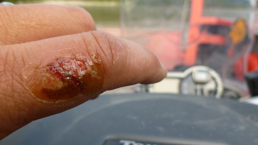 Nice burn I got but it looks worse then it is. That is old second skin on there just dirty. Oh yeah I am supposed to be keeping it clean.