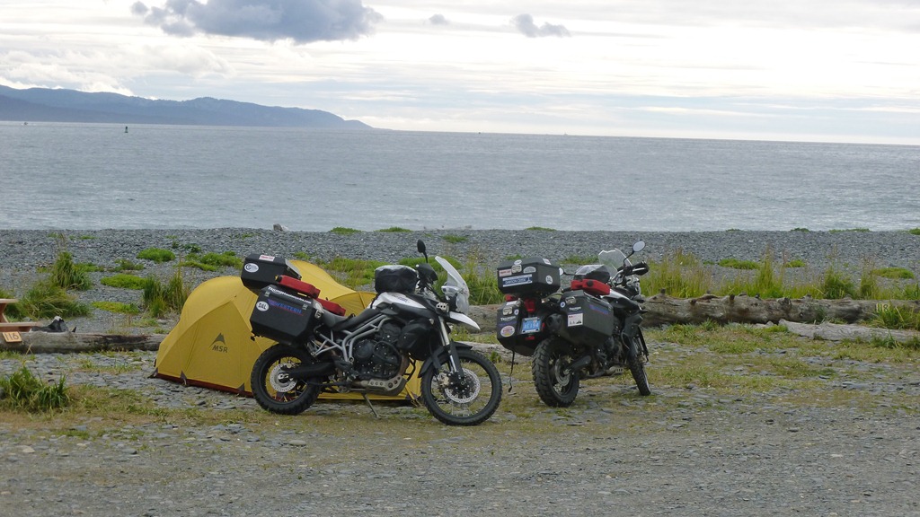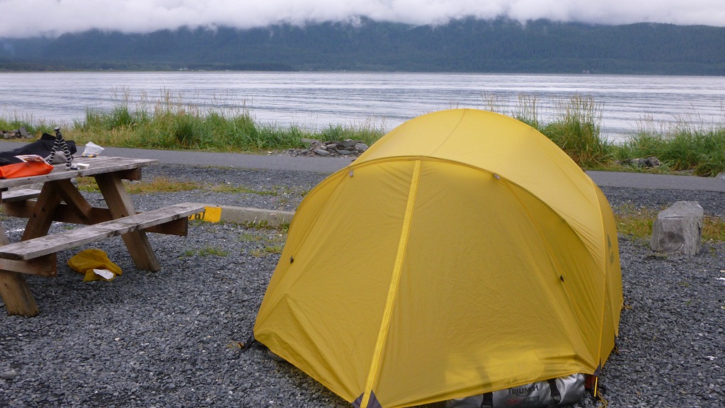 Good news is that we stayed warm last night in Homer with temperatures dipping down to 38 degree F or 4 degrees C. The Mutha Hubba tent we have really kept it together with all the wind that blew up over night and we actually felt insulated for the first time. Could be that the bikes helped as we positioned the tent strategically.