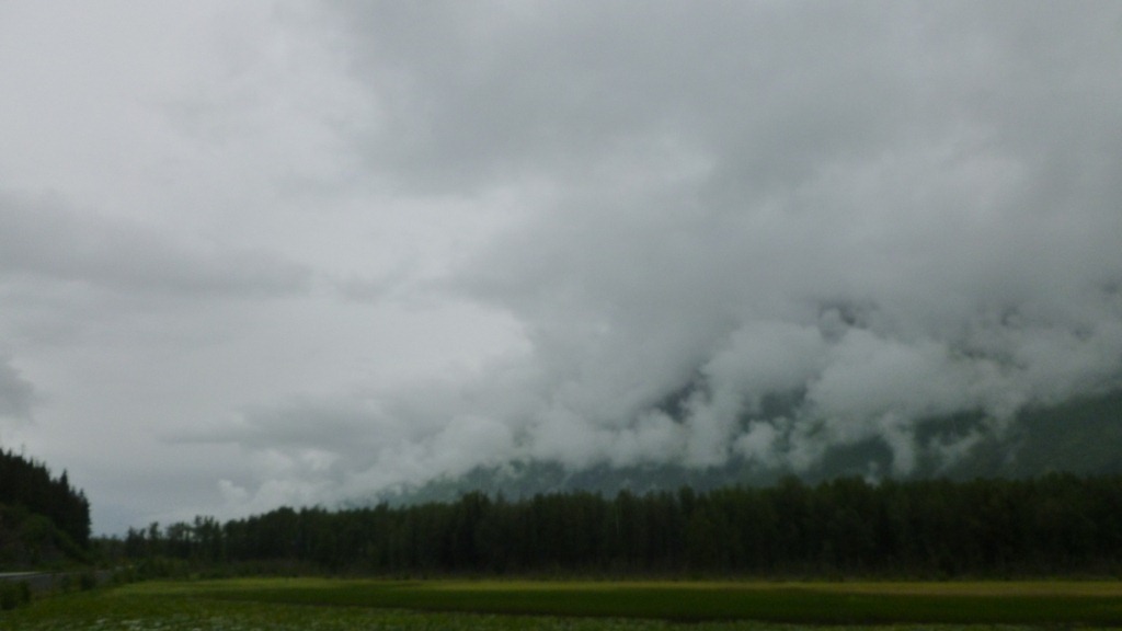The lightened sky in the above picture is actually towards Seward and we were thinking how cool would it be if it dried out by the time we got there and could camp? We hate setting up camp in the rain.