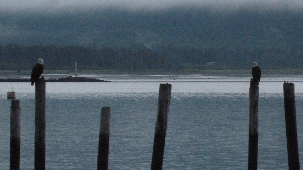 I woke up to hearing Bald Eagles trilling and some juvies crying out for food. The seagulls and Ravens were going nuts towards the Harbor off I went. Not only to see what all the fuss was about about but in search for my morning real coffee.
