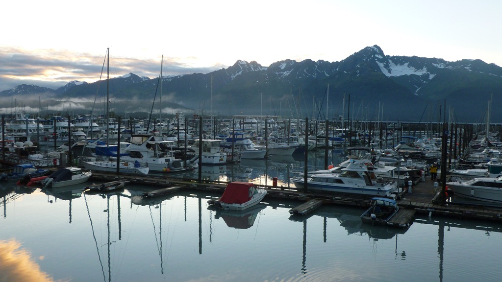 Just amazing how a day can make in what we get to see. Such a beautiful tranquil harbour surrounded by snowy mountains. This range is called the Chugach Mountains.