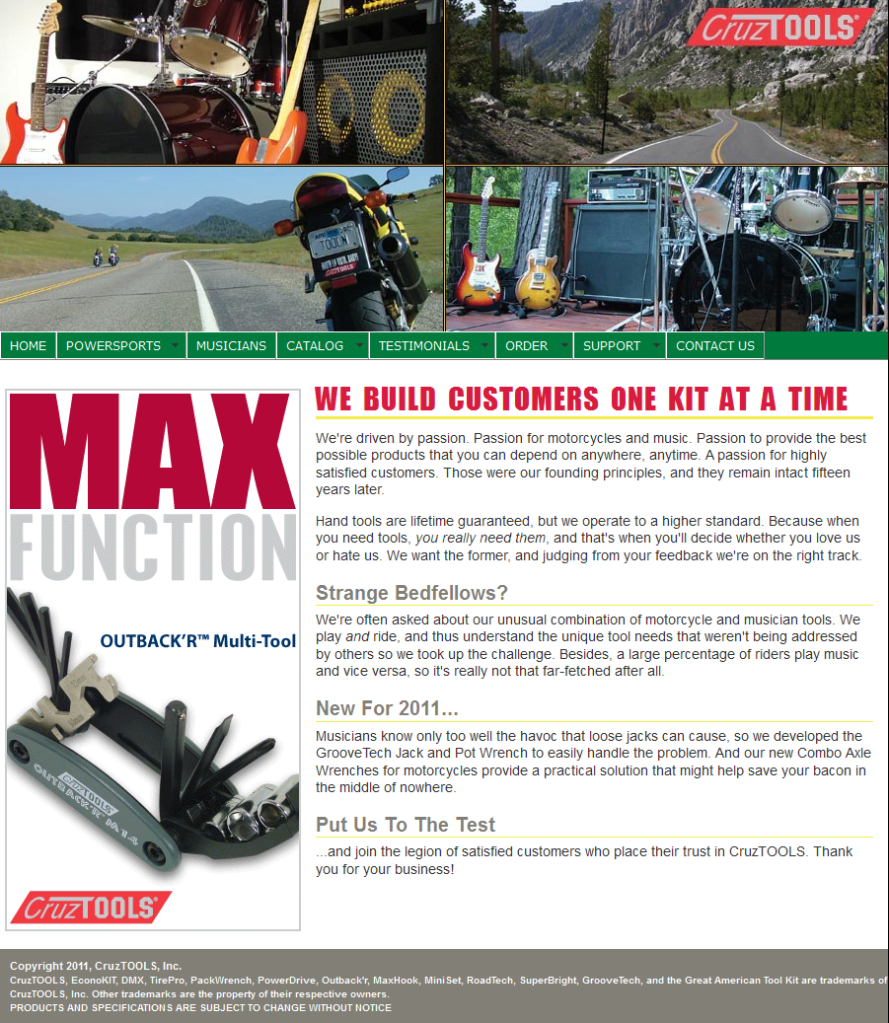 You can buy Cruz Tools probably from your dealer or online. Many companies carry this brand or others like it. Other trip items are: Tire Plug Kit, tire gauge, Swiss Army knife or Leatherman, wire, loctite, zip ties and first aid kit. We bring some other items but I am going to leave that up to you…the readers to add….as a comment.