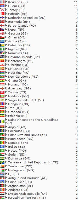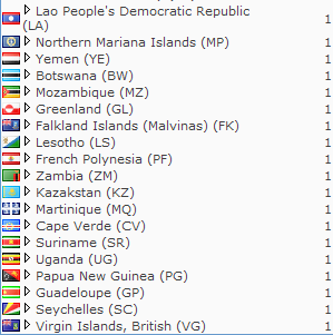 We have to be honest some of the countries visiting this site we have never heard of but thanks to the next few pics I will be posting we are also getting a great lesson in geography. Is your country listed?