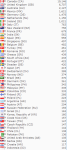 (I will fix screen shots of the specific country lists when I get home from work tonight.)