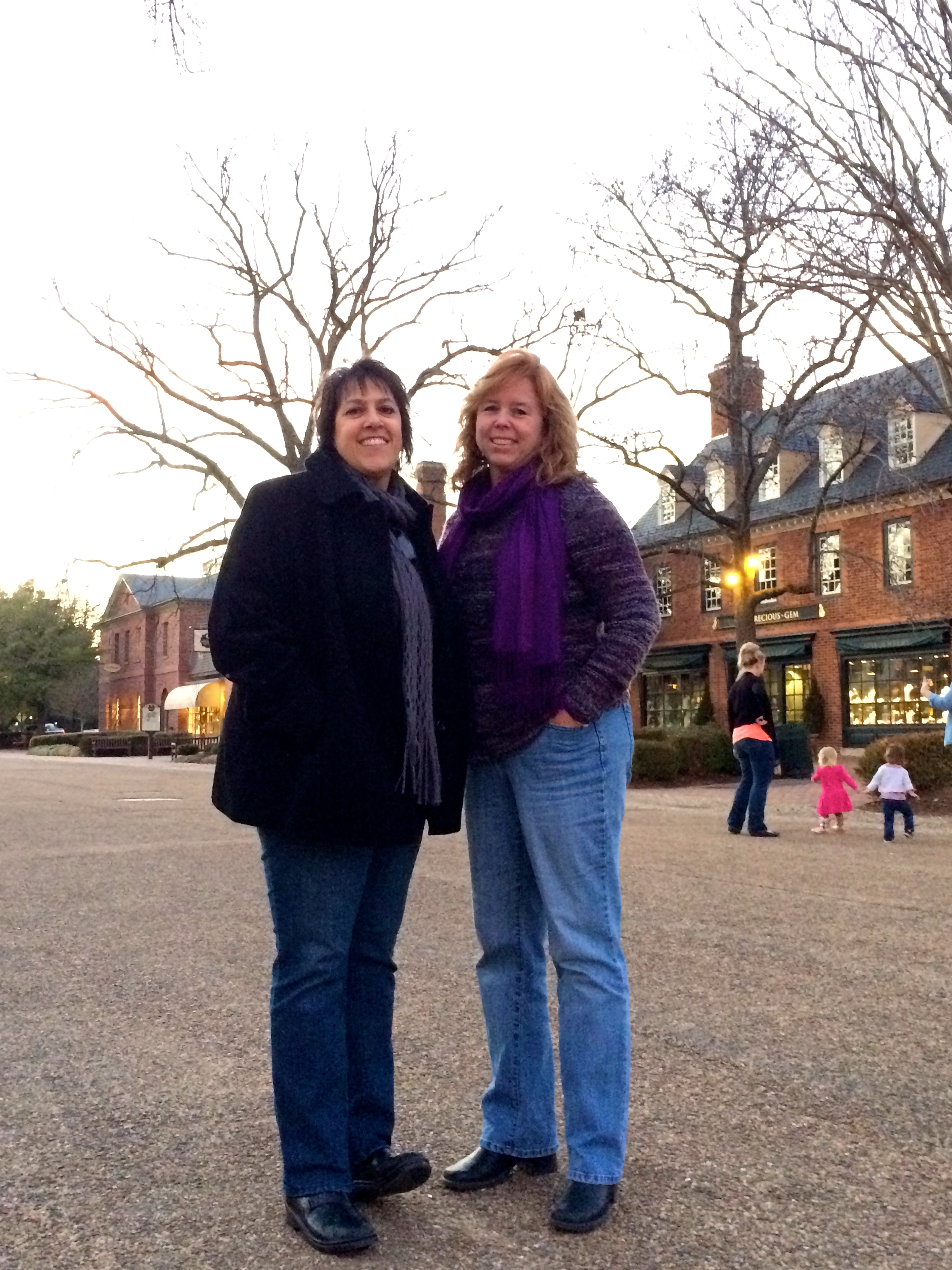 The night I arrived my friends Ann Marie and Allison greeted me with open arms and it was so nice out we went right into Colonial Williamsburg for a walk and then a great dinner. I know Ann Marie from my under grad years at Hobart & William Smith and she and her now fiancée have been my friends since 1984. Always great to see them and I was fortunate to be able to stop by their gorgeous house last May 2014 on my way up the coast on my 2014 X Country therapy trip. 👍