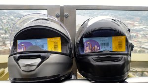 Our helmets made the elevator ride too